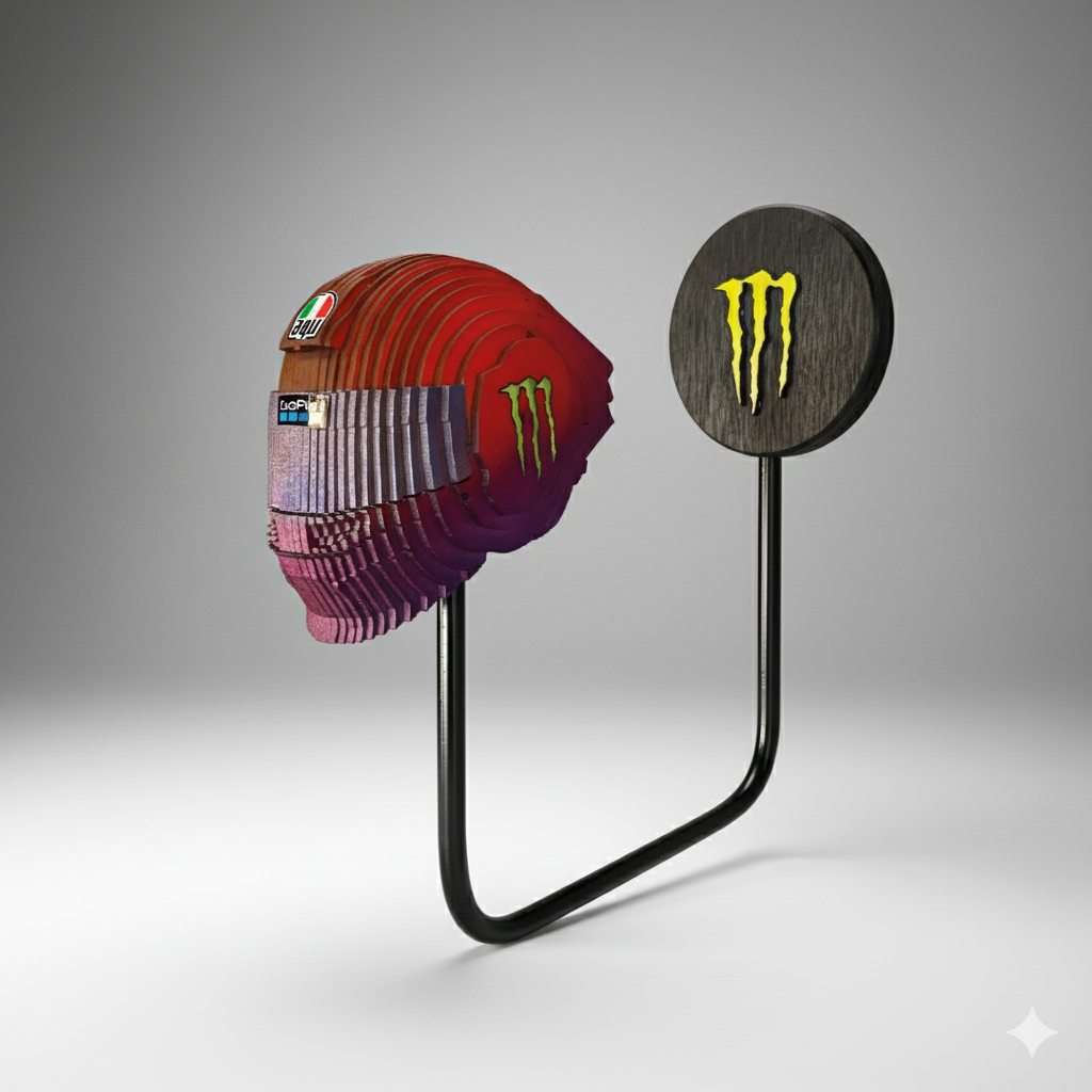 Nuestros soportes para cascos estas diseñados para soportar y aguantar cualquier tipo de casco, incluso se le puede colgar una chaqueta con un gancho. Estos soportes se pueden personalizar con un color en cada pieza, en los comentario al momento de hacer tu orden puedes especificar los colores que deseas. La base que va en la pared tambien puedes escoger el diseño entre varios modelos que tenemos, debes especificar el diseño que quieres al momento de realizar tu pedido.